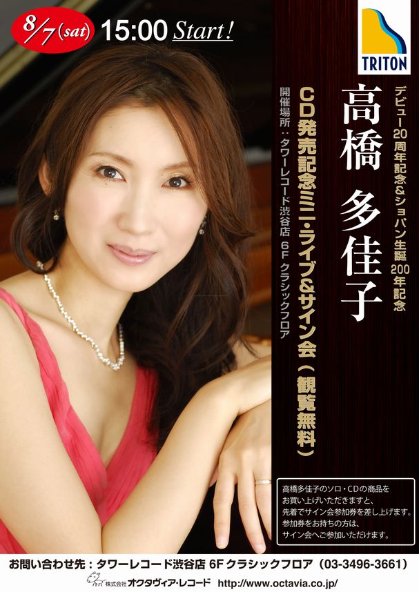 CD発売記念 ミニライブ&サイン会(観覧無料) 日時: 2010年8月 7日(土) 15:00~ ※高橋多佳子のソロCDの商品をお買い上げの方に、 |
